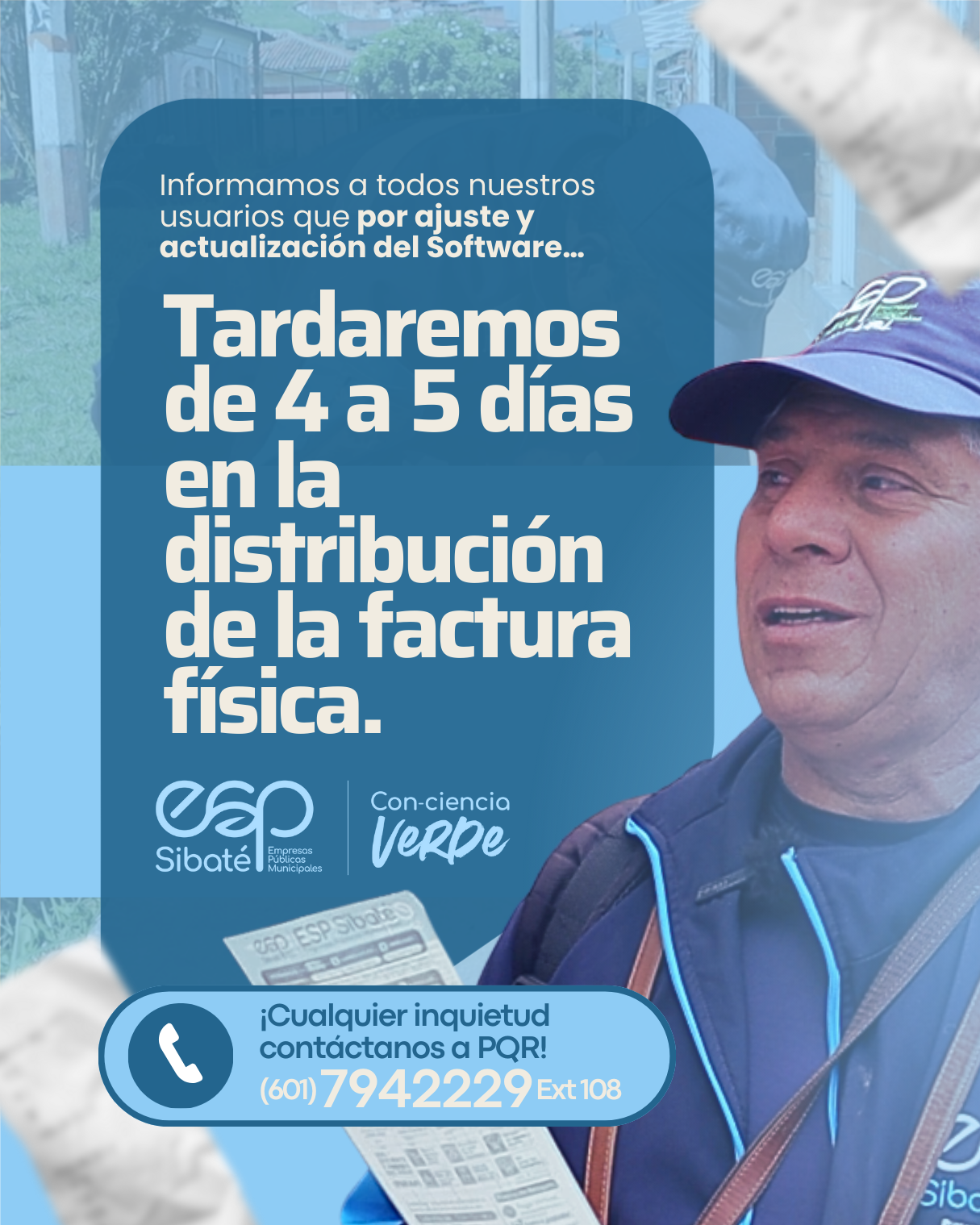 Al hacer clic el botón enviar, usted acepta la remisión de la PQRS a la entidad Empresas Públicas Municipales de Sibaté SCA ESP. Sus datos serán recolectados y tratados conforme con la Política de Tratamiento de Datos. En la opción consulta de PQRSD podrá verificar el estado de la respuesta. En caso que la solicitud de información sea de naturaleza de identidad reservada, deberá efectuar el respectivo trámite ante la Procuraduría General de la Nación, haciendo clic en el siguiente link: https://www.procuraduria.gov.co/p ortal/solicitud_informacion_identifi cacion_reservada.page Se deberá indicar los términos que aplican en la presentación de quejas anónimas, para lo cual, se deben indicar las condiciones para aceptarlas conforme con la siguiente normativa: artículo 38 de la Ley 190 de 1995; artículo 69; de la Ley 734 de 2002 y artículo 81 de la Ley 962 de 2005.